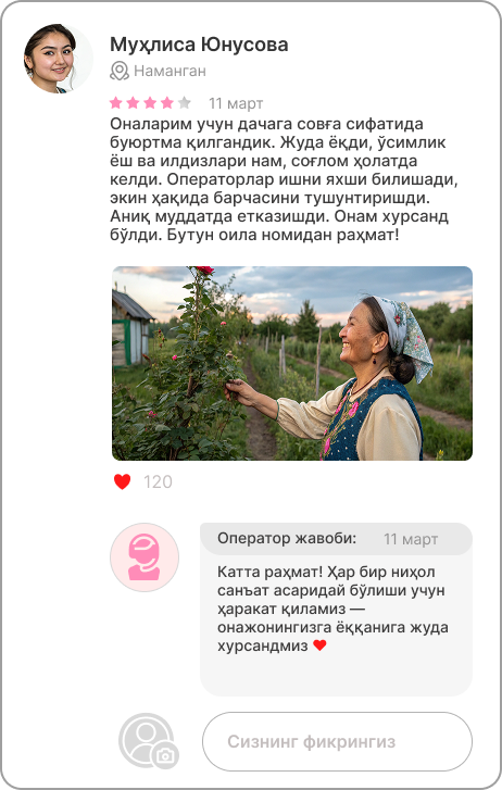 Мамнун харидорларимизнинг фикрлари
